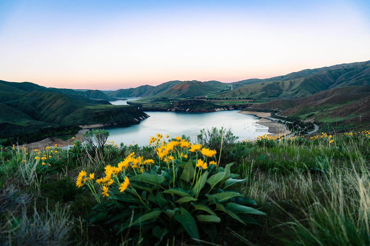 One of my favorite photos from my annual birthday hike. I love how green and fresh everything is this time of year and the alpen glow on the distant hill really pulls the whole shot together for me.