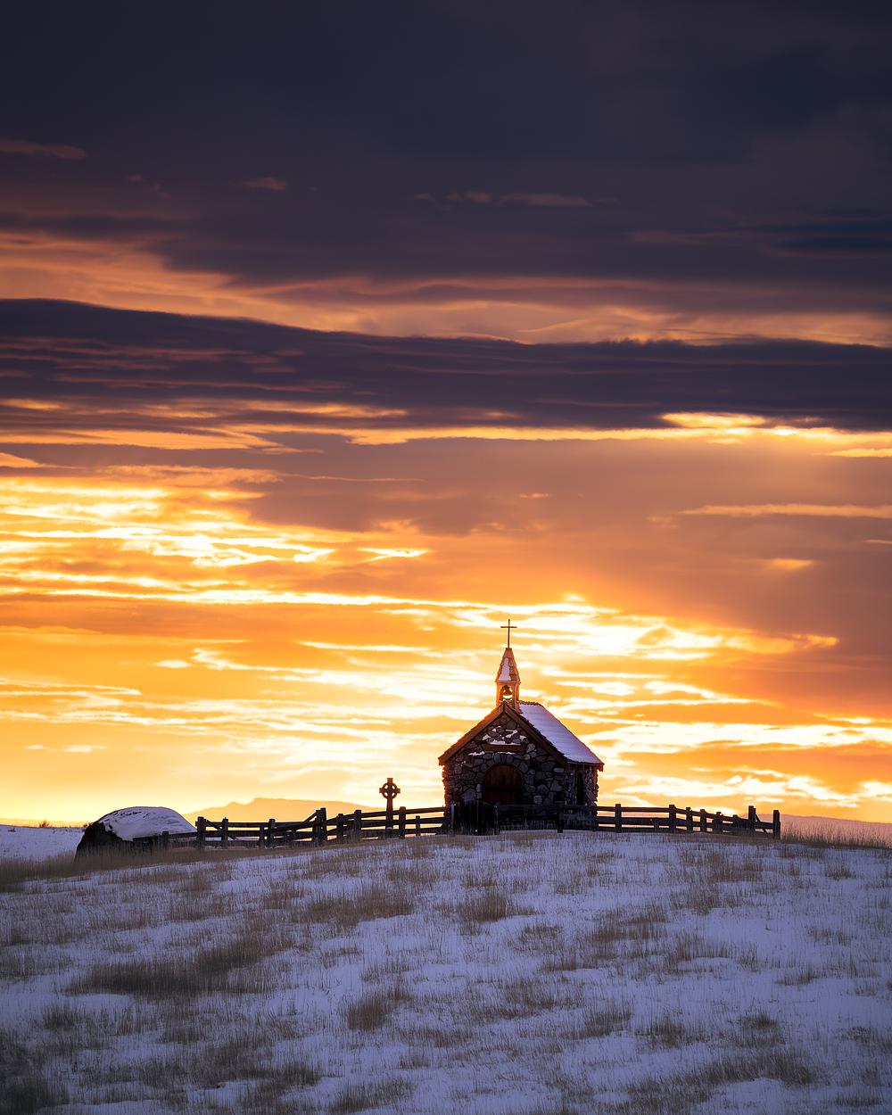 My friend Chad and I went for a drive one random winter afternoon. As we scanned the horizon for grand visits in the foothills of Horseshoe Bend and beyond, we came upon this little church just as the sky was set aflame. We could not have asked for a better view for sunset.