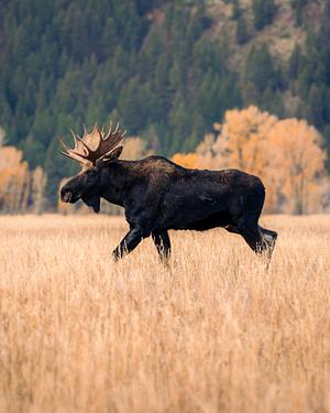 As I photographed the beautiful scenery with the soft light of sunrise slowly warming my cold fingers I noticed a dark shape across the field. I figure it was either a bear or a moose. As it got closer I was so happy to see this magnificent specimen. As he walked right across the street in front of me I took several photos from the back of my truck and when he had passed I got out and took some of my favorite wildlife shots of my life so far. Once again this is offered as a limited edition print. Only 15 will be made.